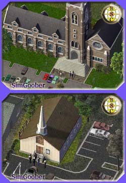11 churches of all denominations to fulfill the religious needs of your sims. This is a composite pack of all previously released churches. Some are rewards but none replace the in game churches.